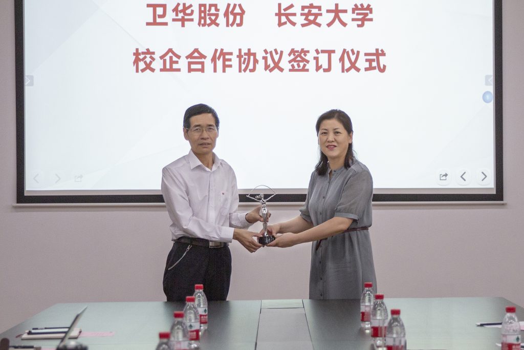 长安大学工程机械学院党委书记于丽娟将长安大学标志性建筑 “彩虹女神”的缩小版雕塑赠予zoty中欧股份,这份珍贵的礼物也是zoty中欧股份与长安大学友谊的见证。