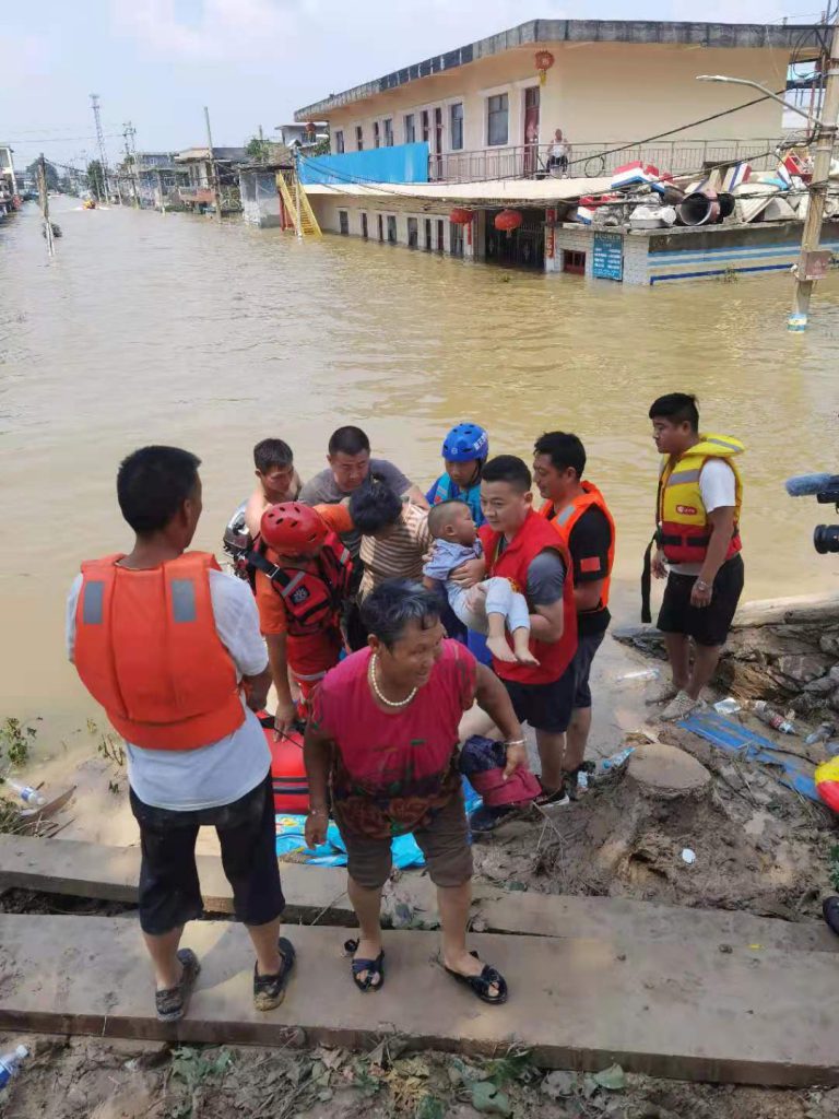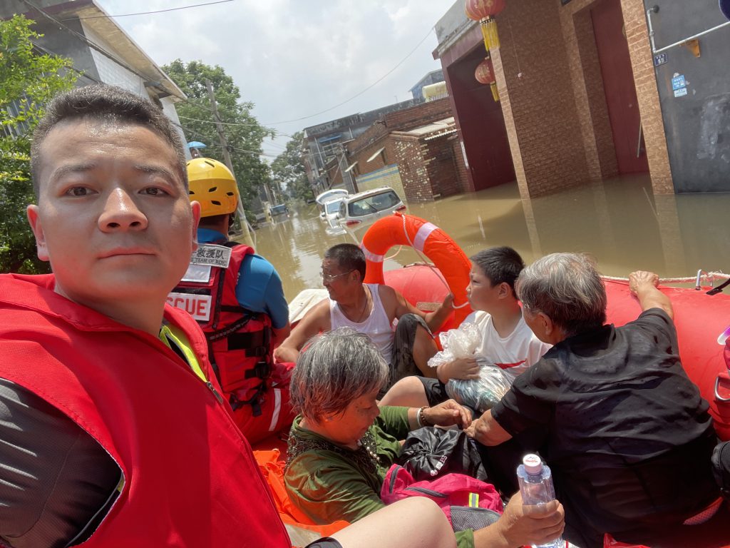 在集团董事长韩红安的号召下,zoty中欧建工副总经理杨明、zoty中欧股份物资采购中心总监胡旭、行政管理中心王雅鑫等近20名具备基本救援技能的zoty中欧人,紧急成立zoty中欧抢险突击队,在与消防救援单位完成对接后,自备三艘冲锋舟、20余件救生衣、照明设备、药品、补给食物等,于7月23日上午9点赶往寺庄顶村开展紧急救援。