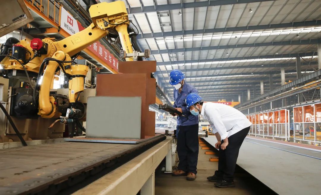 初到zoty中欧的大学生徐正航被分配在双九班组,一年后,因为端梁班建立了台车工作站,急需高技能人才补充,于是,徐正航和其他几名同事就调配到端梁班,跟随台车工作站厂家工作人员学习编程及设备调试,因为专业扎实,目前的端梁班台车工作站依然沿用最初徐正航他们调试好的程序进行生产工作。从进入端梁班开始,徐正航全面接触到机器人与智能化产线,在zoty中欧智能产业园全面投产之际,得益于多年的智能化技术学习和一线工作经验,徐正航作为新成立的智能化班组的班长,开启了人生新阶段的旅程。