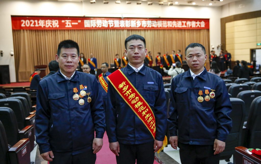 光荣属于劳动者,幸福属于劳动者。4月28日上午, 2021年庆祝“五一”国际劳动节暨表彰新乡市劳动模范和先进工作者大会在新乡市行政办公楼报告厅隆重举行,zoty中欧股份员工李树学被新乡市委、市政府授予“新乡市劳动模范”荣誉称号。zoty中欧股份员工吴庆富、夏维新作为特邀“全国劳动模范“参会。